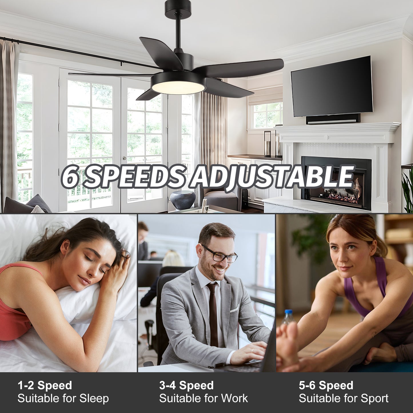46" Modern Matte Black 6 Speed ABS Ceiling Fan with Light and Remote Control